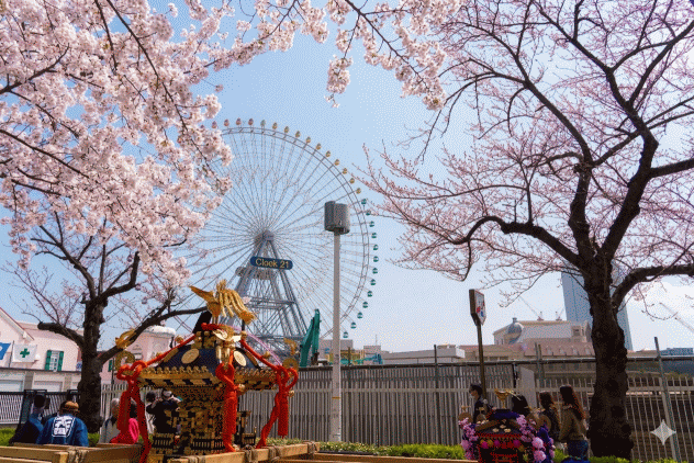 みなとみらいの桜と神輿